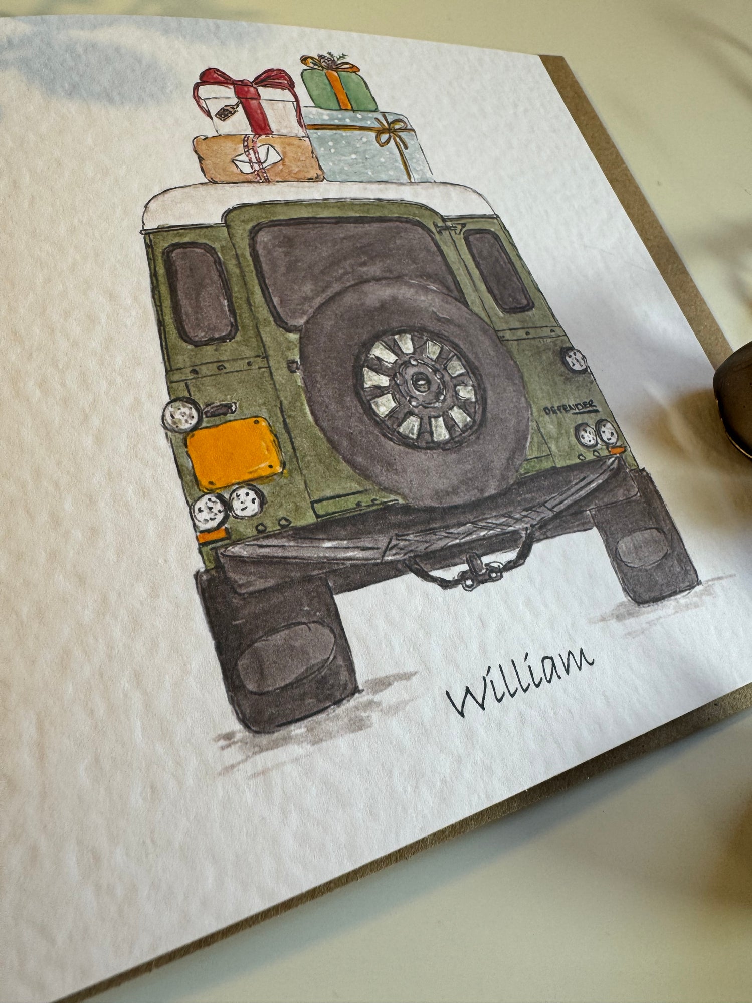 Free personalisation on a wide range of cards and prints now available. Whether you'd like a wedding card with the happy couples names and date of the special day or a Defender print with a friends own numberplate on.