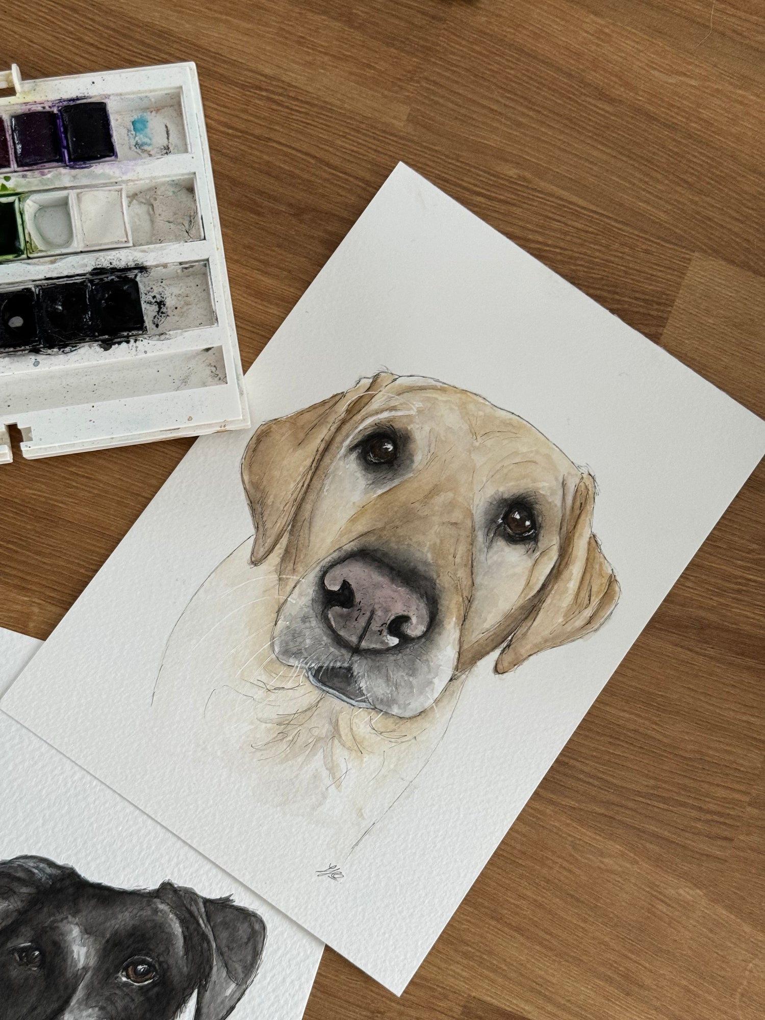 Our portraits are the perfect special gift for a loved one, a friend or a little treat just for yourself. All commissions are hand painted onto heavy weight FSC certificated watercolour paper. A mixture of watercolour paints and ink is used to create the painting.