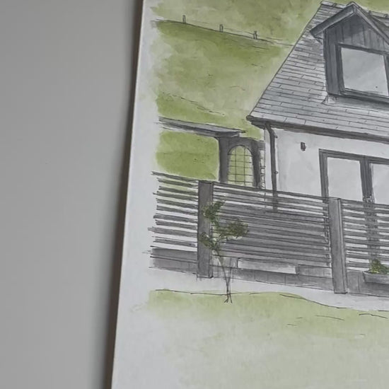 Hand-painted house portrait in watercolour and ink illustration of any house, venue or other building which holds special memories.