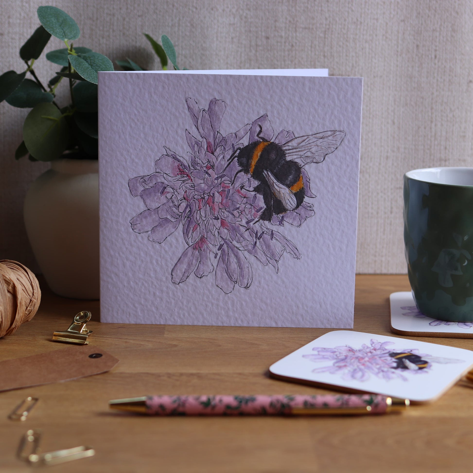 Featuring one of our best selling illustrations, a beautiful bumble bee on a flower. Why not buy the matching card for the perfect gift set, we also have matching keyrings. All our cards are blank so make the perfect keepsake.